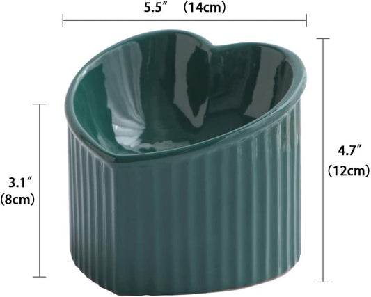 Dark Green Ceramic Elevated Cat Bowls for Food and Water, Ergonomic Design for Stress-Free Feeding, Dishwasher and Microwave Safe, Lead and Cadmium Free